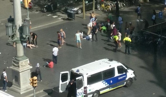 Бял миниван се вряза днес в будка за за вестници на площад „Каталуня“ в Барселона, близо до централния булевард „Ла Рамбла”, блъскайки по пътя си преминаващите оттам хора. Колата се е движела на зигзаг около 600 м с 80 км/час, преди да спре върху мозайката на Жоан Миро, която е една от главните туристически атракции. Районът, в който е станал инцидента, е много оживен и е сред най-посещаваните от туристите места. Полицията обяви, че става дума за терористичен акт. Първоначално сведенията за жертвите бяха за един убит и над 30 ранени. По-късно се появиха съобщения, че са били убити 13 души и над 50 ранени. Както и при други терористични актове с подобен характер, възможно е броят на жертвите да се окаже по-голям.