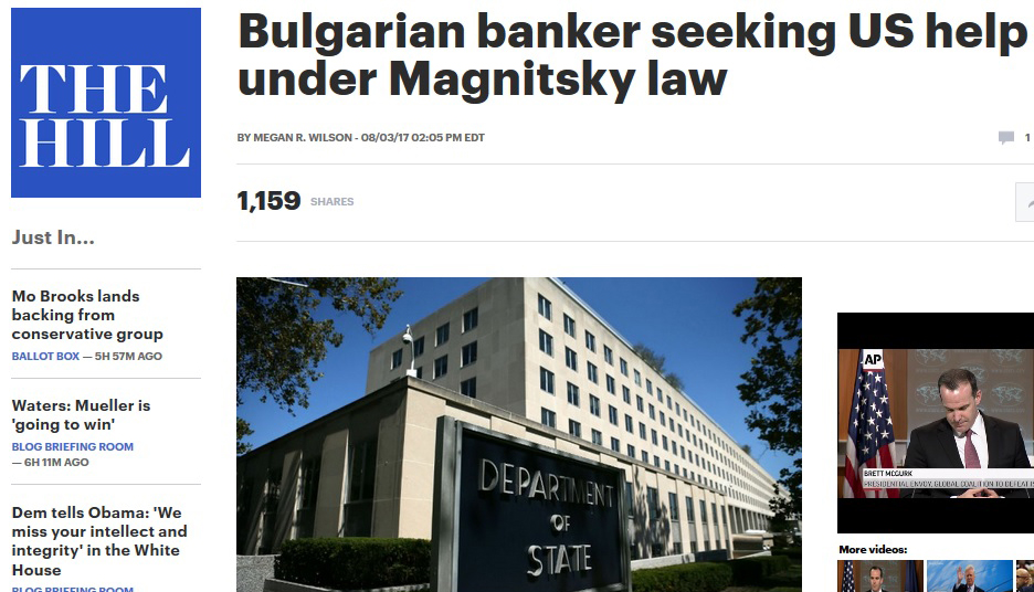 Бивш български банкер настоява неговият казус да бъде първият случай, разглеждан в рамките на глобалния закон „Магнитски“ за човешките права. Законът, приет от Конгреса, позволява налагането на санкции в САЩ за нарушаване на човешките права и корупция в други страни.