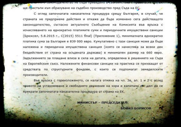 Щяло да „застрашат разследването на нарушение от страна на България“, ако покажат въпросния документ.