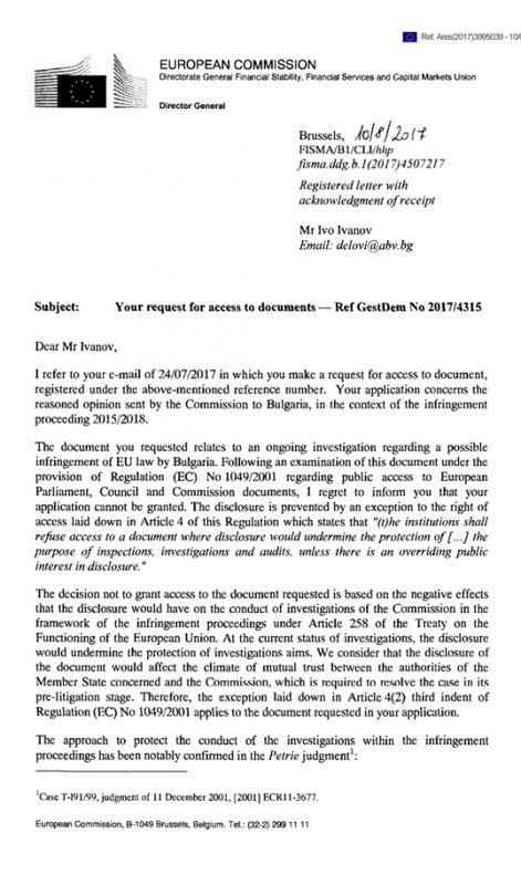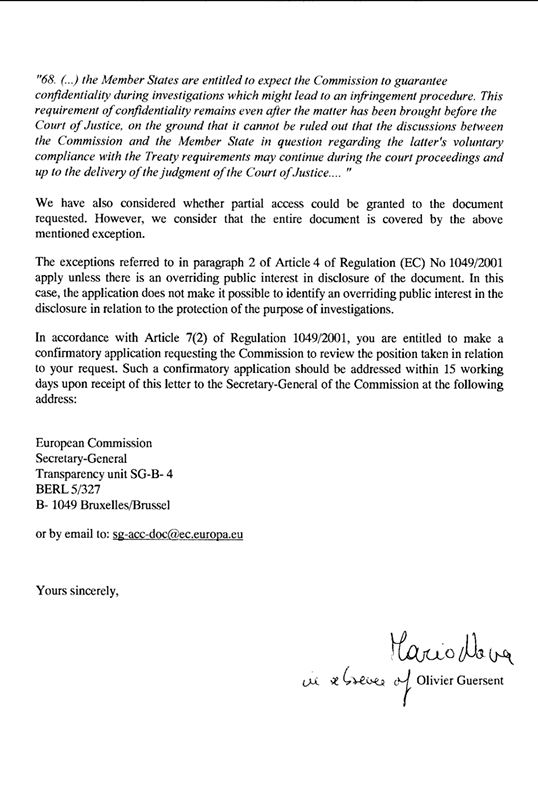 Това пише в отговора на ЕК, показан по-долу (на английски език).