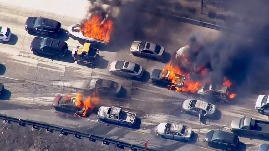 Пожарът затвори и магистрала до Лос Анджелис. Над 20 автомобила и камиона изгоряха по междущатската магистрала I-15, която е основният път между Южна Калифорния и Лас Вегас в Невада. Стотици туристи и пътници, както и живеещите в района, трябваше да бъдат евакуирани.