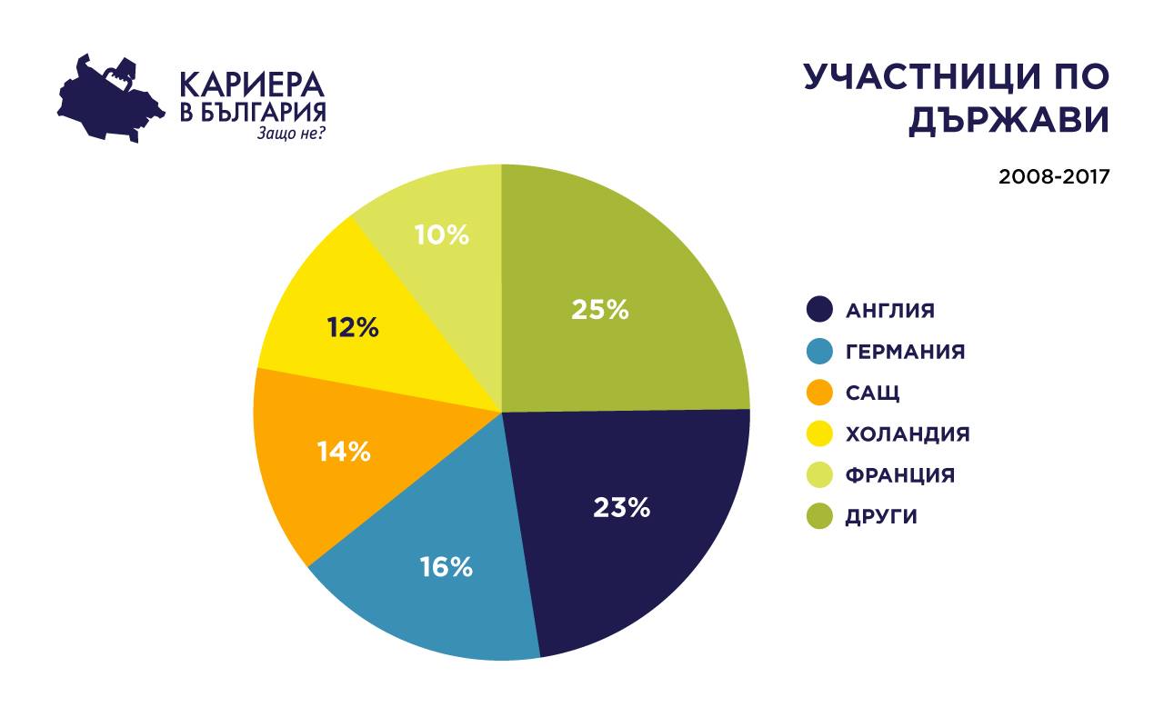 През годините, българи с опит от над 85 държави са посетили форума. Организаторите споделят, че най-много участници идват от Западна Европа и САЩ, като българите с опит в Англия са 23%, следвани от Германия (16%), САЩ (14%), Холандия (12%), Франция (10%).