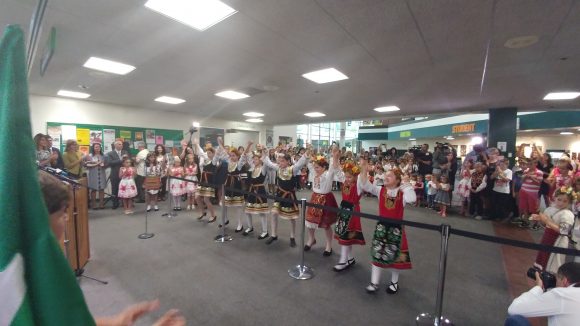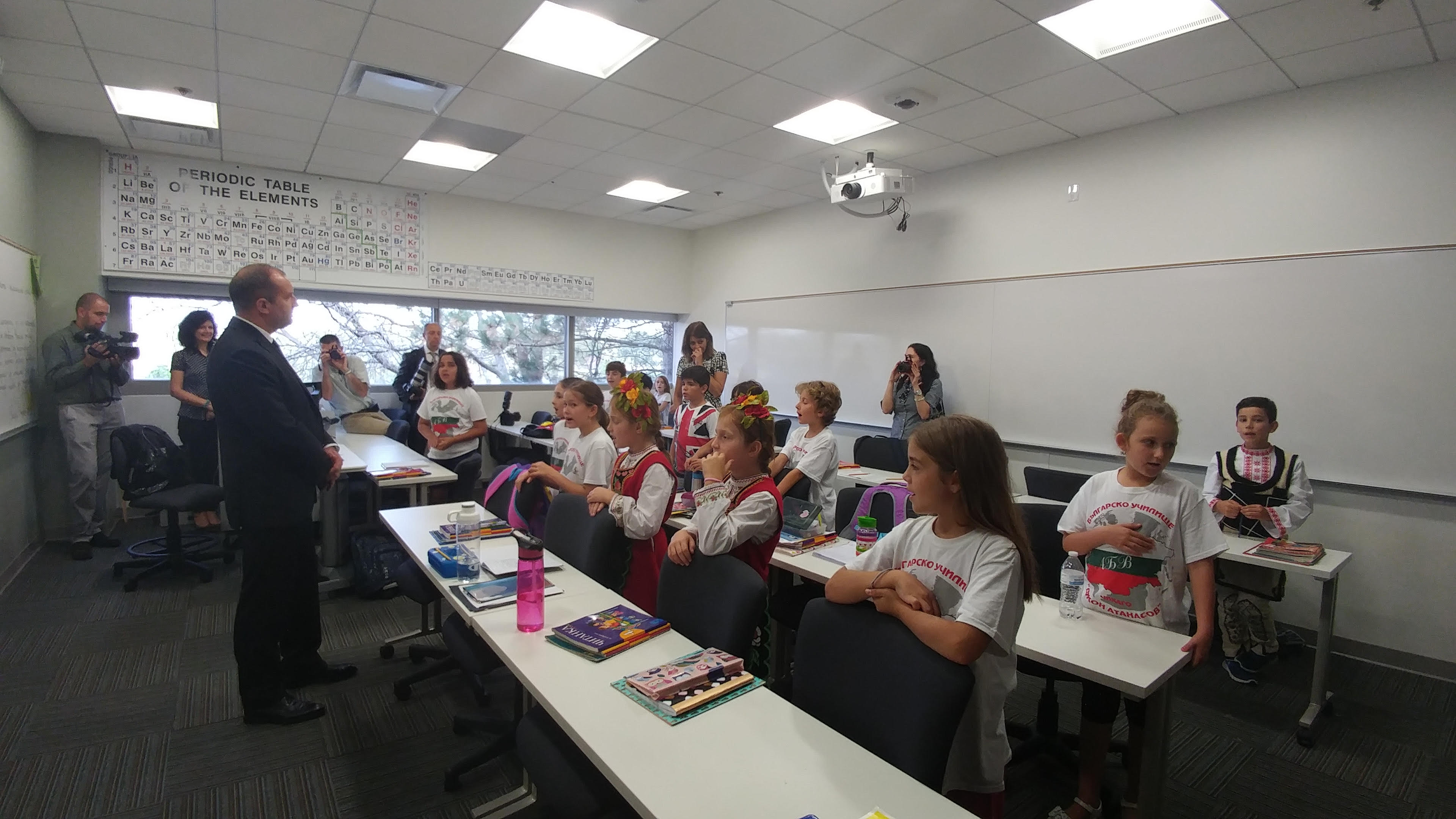 След вълнуващото българско хоро, изпълнено от децата, Боянка Иванова говори и за издигането на статута на българския език като матуритетен в ЕС, както и за включването на българския език в програмата Seal of Bilteracy (Печат за двуезичност) в щата Илийнос и в други щати.