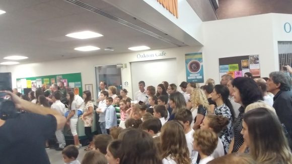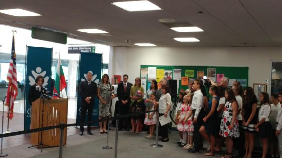 След това ученици от БУ „Джон Атанасов“ изпълниха българския и американския национални химни.