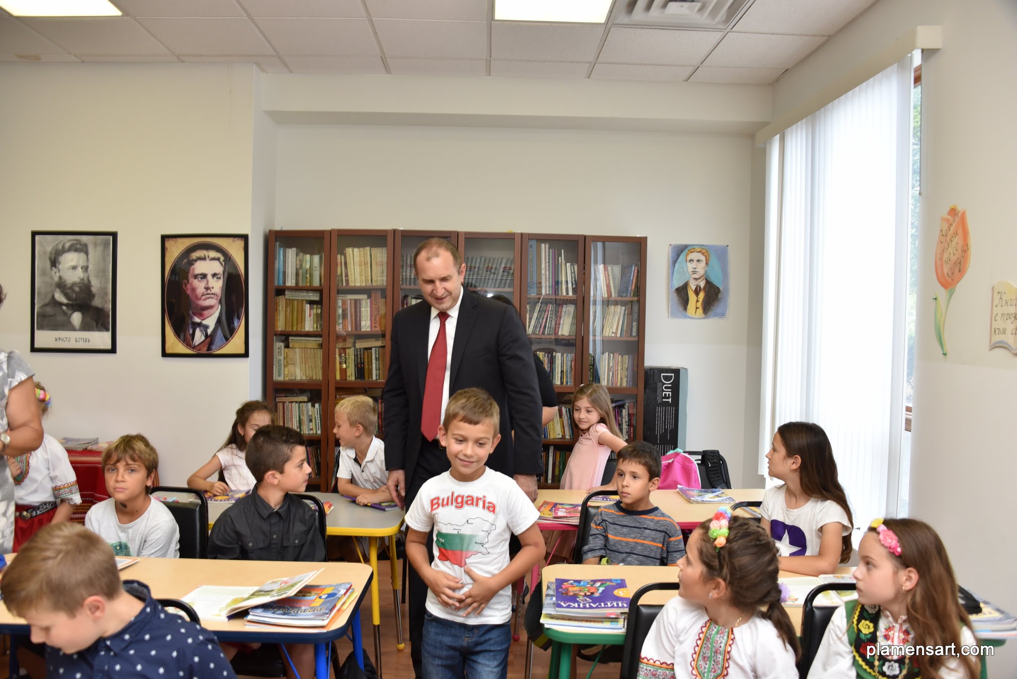 Държавният глава и неговата съпруга посетиха класните стаи на училището и се срещнаха с децата, които се надпреварваха да покажат своите знания и умения. Те го гледаха с грейнали очи, а лицата им бяха озарени от големи щастливи усмивки, защото техен гостенин беше президентът на Р. България.