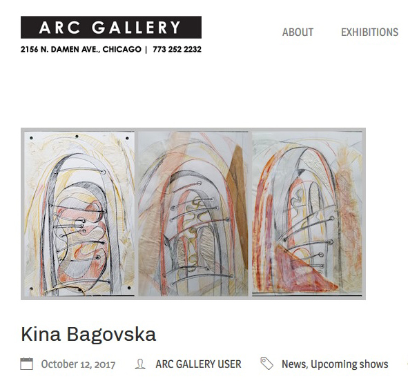 Изложба на нашата сънародничка Кина Бъговска ще бъде открита в галерия ARC в Чикаго. Изложбата, която се нарича „Ритуали“, ще може да бъде видяна от 25 октомври до 18 ноември т.г. Официалното откриване е на 27 октомври, с музика на живо от Дуо „Утопия“ – Живко и Маргарита Николови.