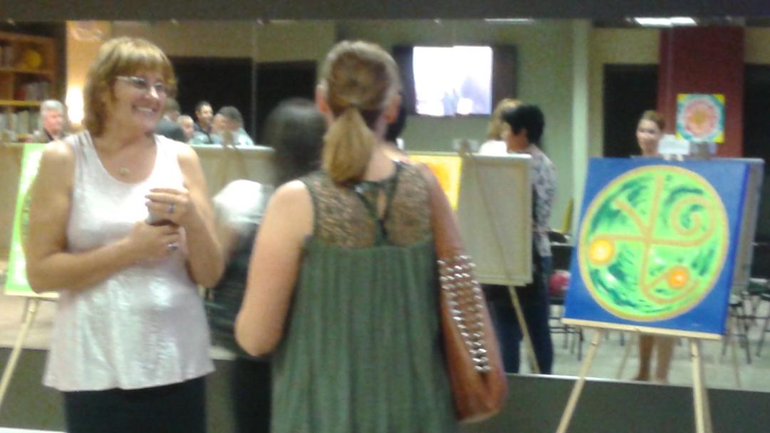 Радваме се, че творец с такава целеустременост и поттенциал е член на Салона за българска култура и духовност. На чаша вино и вкусни хапки имахме възможност да разговаряме, разглеждайки картините, поставени на стативи и по стените, както и рисунки със знаците Оренда върху декоративни съдове. Приятната атмосфера се допълни от звуците на китара и флейта, в изпълнение на Маргарита и Живко Николов, които изпълниха няколко музикални пиеси.