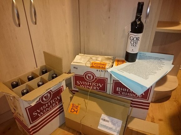 В началото на тази седмица един приятел от ФБ, на име Симеон Коев, който е писател и живее в Търново, ми поиска адреса и телефона, за да ми прати нещо за четене и да не се ядосвам за откраднатото грозде. Написах му го. Днес по обяд, преди да тръгна за работа, пристигна бус на една куриерска фирма и куриерът ме помоли да сляза, защото не можел да ми донесе сам кашончетата. Очаквайки една книга, не разбрах за какви кашони говори той. Слязох и видях четири кашончета с червено вино „Горчивка“ (20 бутилки), което е едно от най-хубавите български вина! Щом ги качих в гарсониерата, намерих и хартиено руло, вързано с канап, на което пишеше следното: