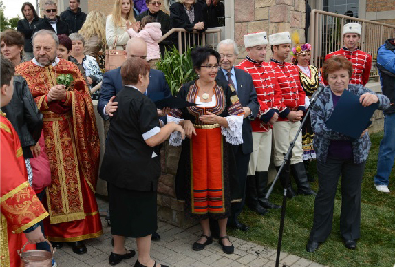 Участие в празничната церемония взеха домакинът и почетен консул на Р. България в Мисисага г-н Игнат Канев и г-жа Димитрина Канева; генералният консул в Торонто г-н Петър Крайчев; временно управляващият посолството в Отава г-жа Светлана Стойчева-Етрополски; завеждащият консулската служба в ГК – Торонто г-жа Десислава Атанасова; почетният председател на БИПЦ „Св. Димитър“ д-р Константин Вълчев; членове на настоятелството с председател г-жа Цветанка Христоскова; отец Валери Шумаров; фолклорният ансамбъл „Димитровче“ с ръководител г-н Димитър Минков; възпитаници на неделното училище „Канев“ с директор г-жа Стамена Димова; стотици българи, енориаши, спомоществователи, представители на карловското землячество, средства за масово осведомяване и др. От името на храма г-жа Христоскова връчи сертификати на дарителите за изграждане на паметника – сътворен в ателието на инж. Тодор Ганарев и инж. Радиана Дервенска в България – сред които и първият дарител и член на църковната община „Св. Димитър“ г-н Марин Балинов от Манитоба.