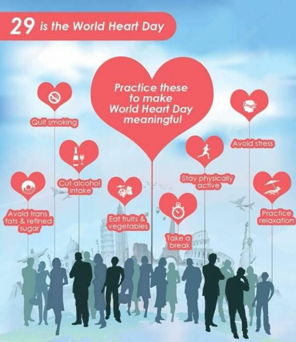 Световната здравна организация не спира да води борба с незаразните болести (НЗБ, англ. – non-communicable diseases, NCD) – например, сърдечно-метаболитните болести – атеросклероза, хипертония, затлъстяване (обезитас), диабет тип 2 и метаболитен синдром. Те са мултифакторни болести, предизвикани от много рискови фактори, на които, ако не противодействаме, ни наказват с инфаркти и инсулти. Едни от тях са консумация на храни, съдържащи транс-мазнини и подсладители, свръхконсумация на сол (натриев хлорид), тютюнопушене и занемарена физическа активност (показани на приложения афиш на Световния ден на сърцето).
