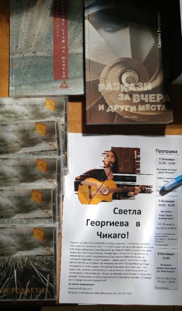 Днес, 9 oктомври, поетесата-бард Светла Георгиева отпътува от Чикаго за София. С нейните творчески срещи и концерти в Чикаго, организирани от нашето издание, завърши турнето й в САЩ, проведено под надслов „Поезия без граници – Американски рецитали ‘2017″.