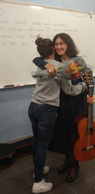 На 7 октомври беше творческата среща на Светла Георгиева в Българското училище „Джон Атанасов“. Срещата там се превърна в не само в диалог, песни, но и в открит урок по поезия. Децата задаваха различни въпроси и под ръководството на учителката Таня Дишев научиха много не само за твореца Светла Георгива, но и за творческия процес като такъв, и за поезията, и за това как всеки един от нас я интерпретира.