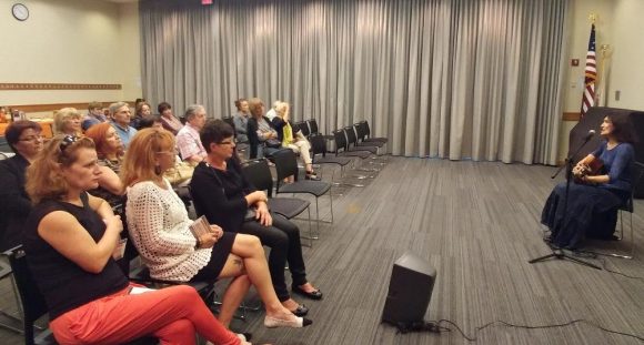 „На 7 октомври, в библиотеката на Des Plaines, поетесата-бард Светла Георгиева представи свой рецитал пред български почитатели от Чикаго. Това е поредното й представяне пред българска публика, след гостуването й в Калифорния и Ню Йорк. Благодаря за чудесните изпълнения – за прекрасните стихове, дълбоки и искрени, и съпровода на китара, изпълнен с много чувство. Това прекрасно докосване до българското изкуство беше възможно благодарение на организаторите – Петранка Стаматова и Еврочикаго. Успех! С пожелание за повече такива изяви!“
