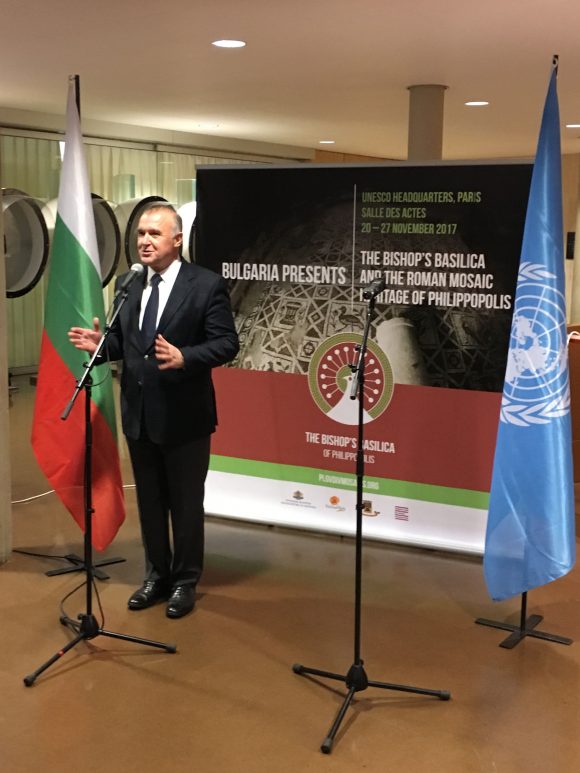 На 20 ноември 2017 г. в централата на ЮНЕСКО в Париж бе открита изложбата „България представя: Епископската базилика и римското мозаечно наследство на Филипопол“, организирана от Фондация „Америка за България“ с подкрепата на Постоянното представителство на България към ЮНЕСКО, Министерството на културата, Министерство на туризма и Община Пловдив.