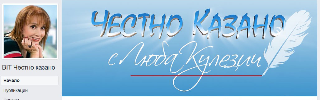 Предаването на тв водещата Люба Кулезич „Честно казано“ е свалено от ефира на BiT. Новината за свалянето на предаването бе споделена първо в социалната мрежа Фейсбук от бившият ни посланик в Москва Илиян Василев. „Излъчват записи, за да не се усети липсата“ – написа Василев. След това свалянето на предаването бе потвърдено от програмния директор на телевизията Сашо Диков, потърсен от OFFNews.