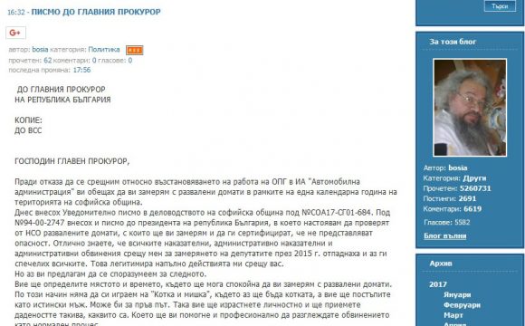 Писмото на Николай Колев – Босия до главния прокурор е публикувано в блога на Босия ТУК.