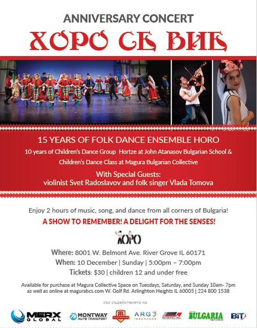 The event will mark 10 years since the creation of the dance choir Hortse at the John Atanasov Bulgarian School. The concert will be attended by a children’s dance school at the Magura Center and the special guests Svet Radoslavov and Vlada Tomova.