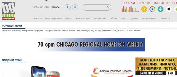 Българите в САЩ и Канада ще могат от днес да слушат ново радио, 24 часа в денонощието, 7 дни в седмицата. Радио BG VOICE ще стартира точно в 3 часа следобед в Чикаго (4 ч. на Източното и 1 ч. на Западното крайбрежие). Екипът на радиото изпрати прессъобщение, в което се казва: