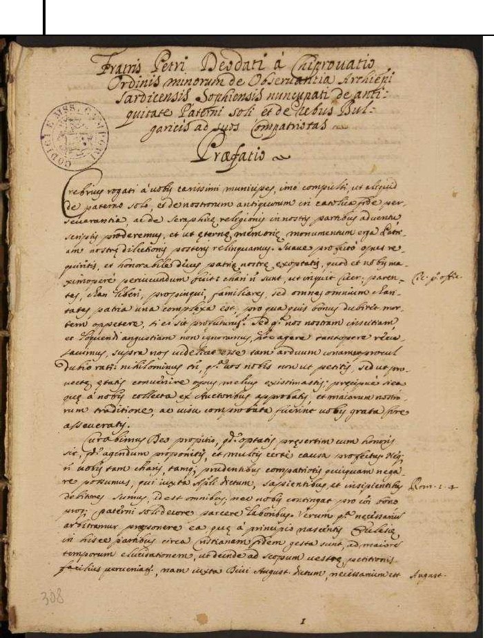 „Определено можем да датираме с точност (макар и приблизителна) възникването на първия итруд, посветен на българската история. Петър Богдан е бил завършил своя труд през 1668 г., след което го оставя за редактиране на хърватския филолог Иван Паштрич, който е и духовник. И той, както и българите – италиански възпитаници през 17 век, се е подписвал и с италиански вариант на името си, като Джовани Пастрицио. И Петър Богдан е предавал името си в други форми, например – на латински като „Петрус Деодатус“ (Деодатус също значи „даден от бога“), давал е името на село Железна (близо до Чипровец) като „Ферара“ (има същото значение) и т.н.
