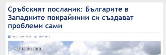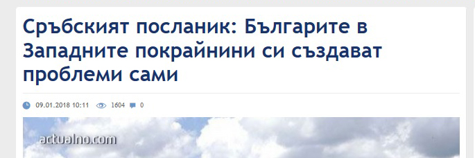 Сръбският посланик Чургус в София е заявил пред българските журналисти, че проблемите на българите в Западните покрайнини, са от типа на „временни несъгласия в самата общност“ и изразил съжаление, че „граничните области между двете страни не са икономически развити в достатъчна степен, за да обезпечат по-добър стандарт на живот на жителите“?!