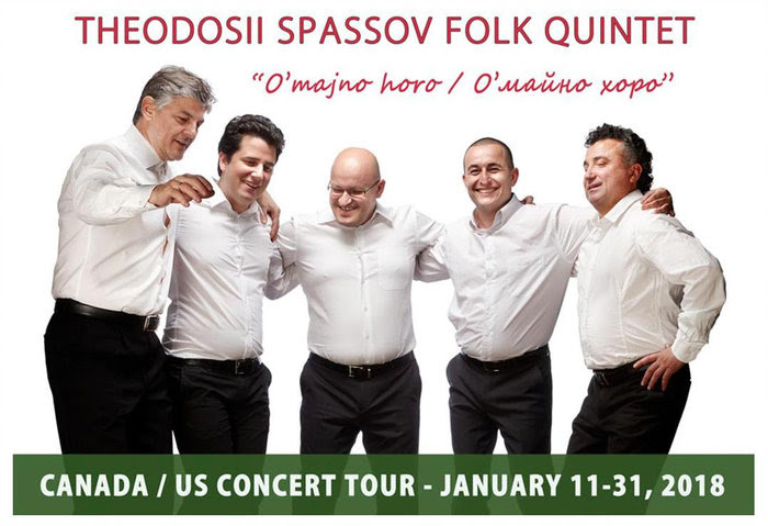 Theodosii Spassov Folk Quintet 2018 North American Tour is dedicated to the Bulgarian Presidency of the Council of the European Union. The Tour is supported by Bulgarian cultural organizations and Consulates General of the Republic of Bulgaria in the United States and Canada. It has been organized under the auspices of the Embassies of the Republic of Bulgaria in Ottawa and Washington, D.C. and comprises events in 16 cities in the U.S. and Canada.