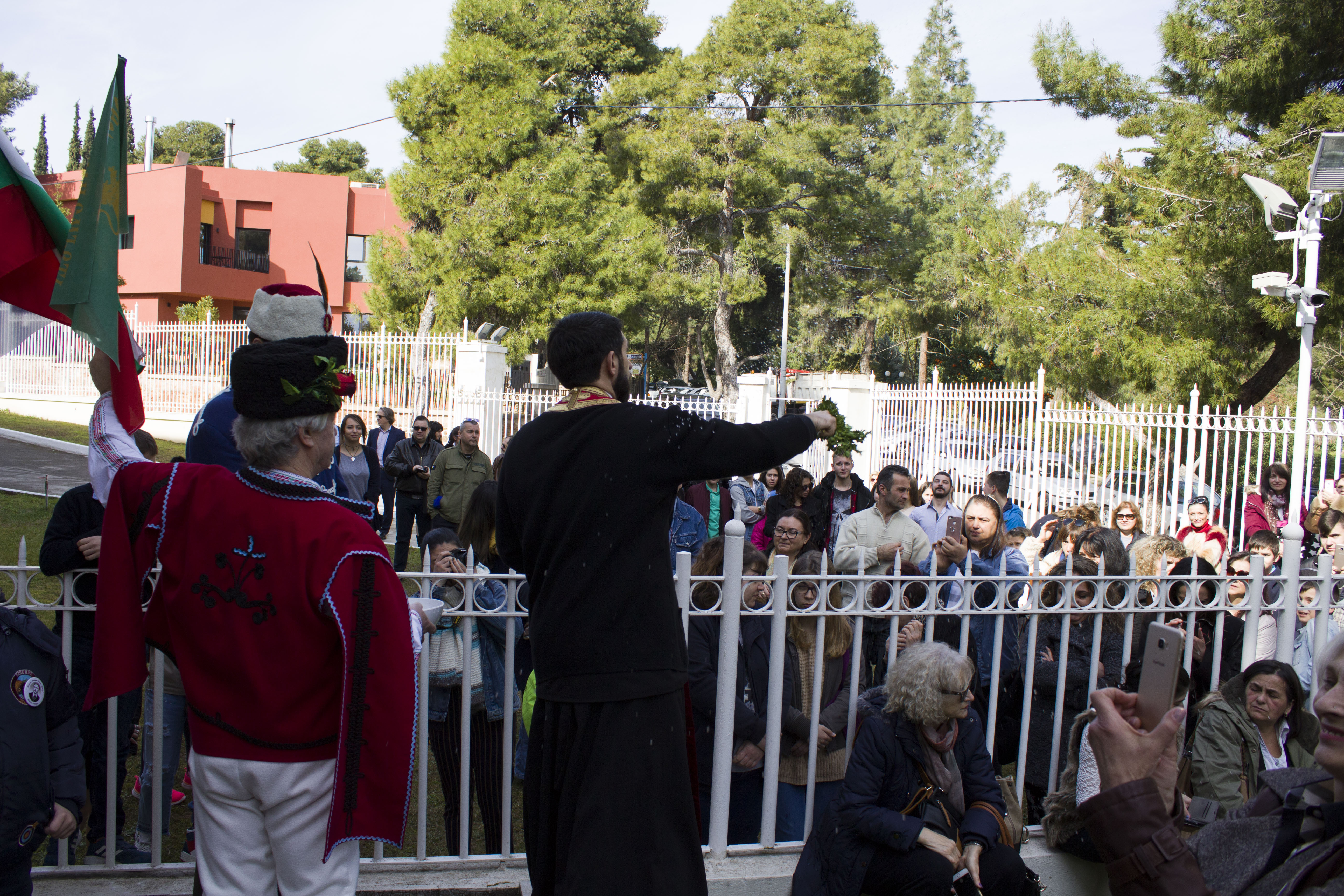 Отец Иван отслужи освещаване на барелефа и благослови присъстващите. Приветствие отправи временно управляващият посолството ни в Атина Веселин Иванов.