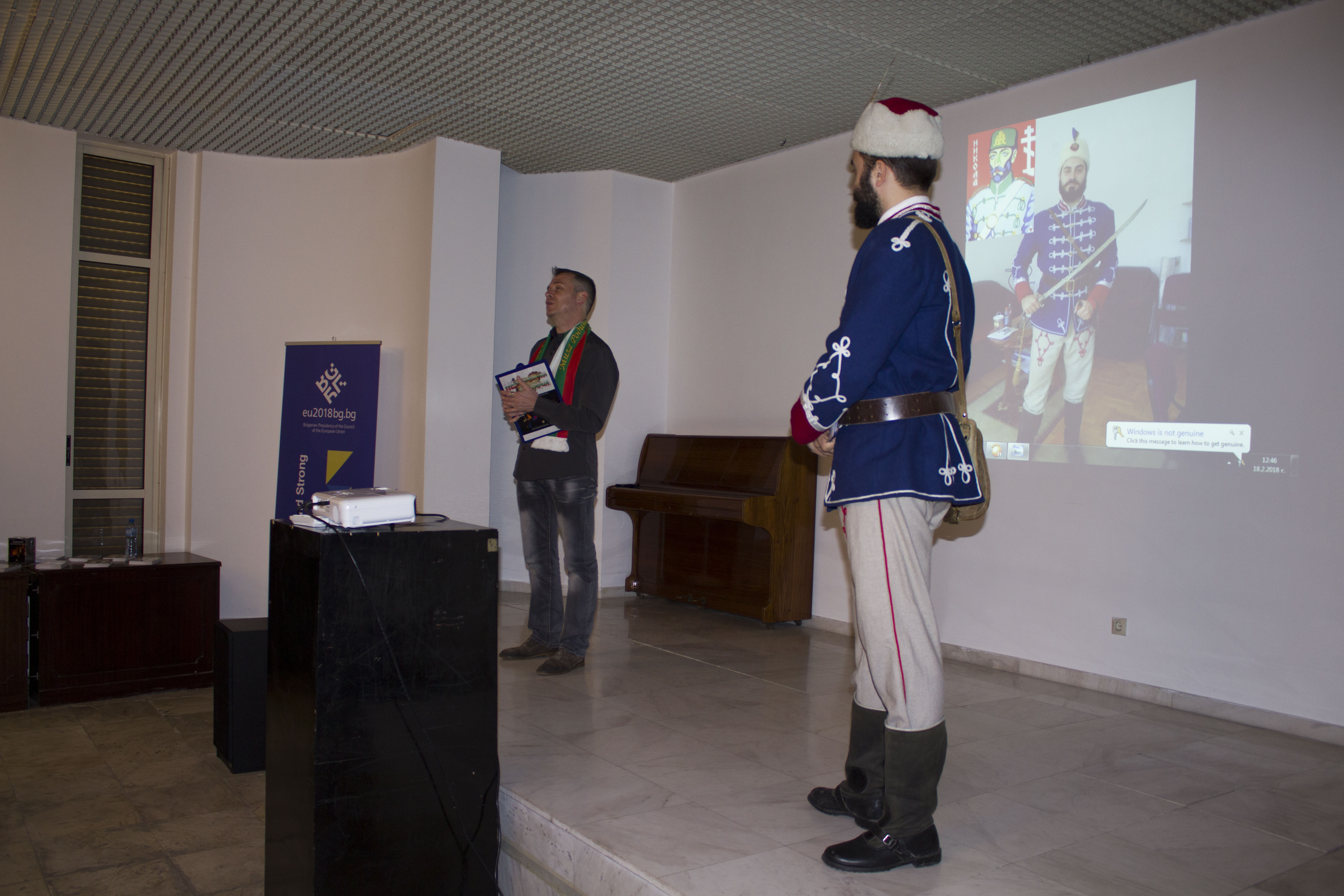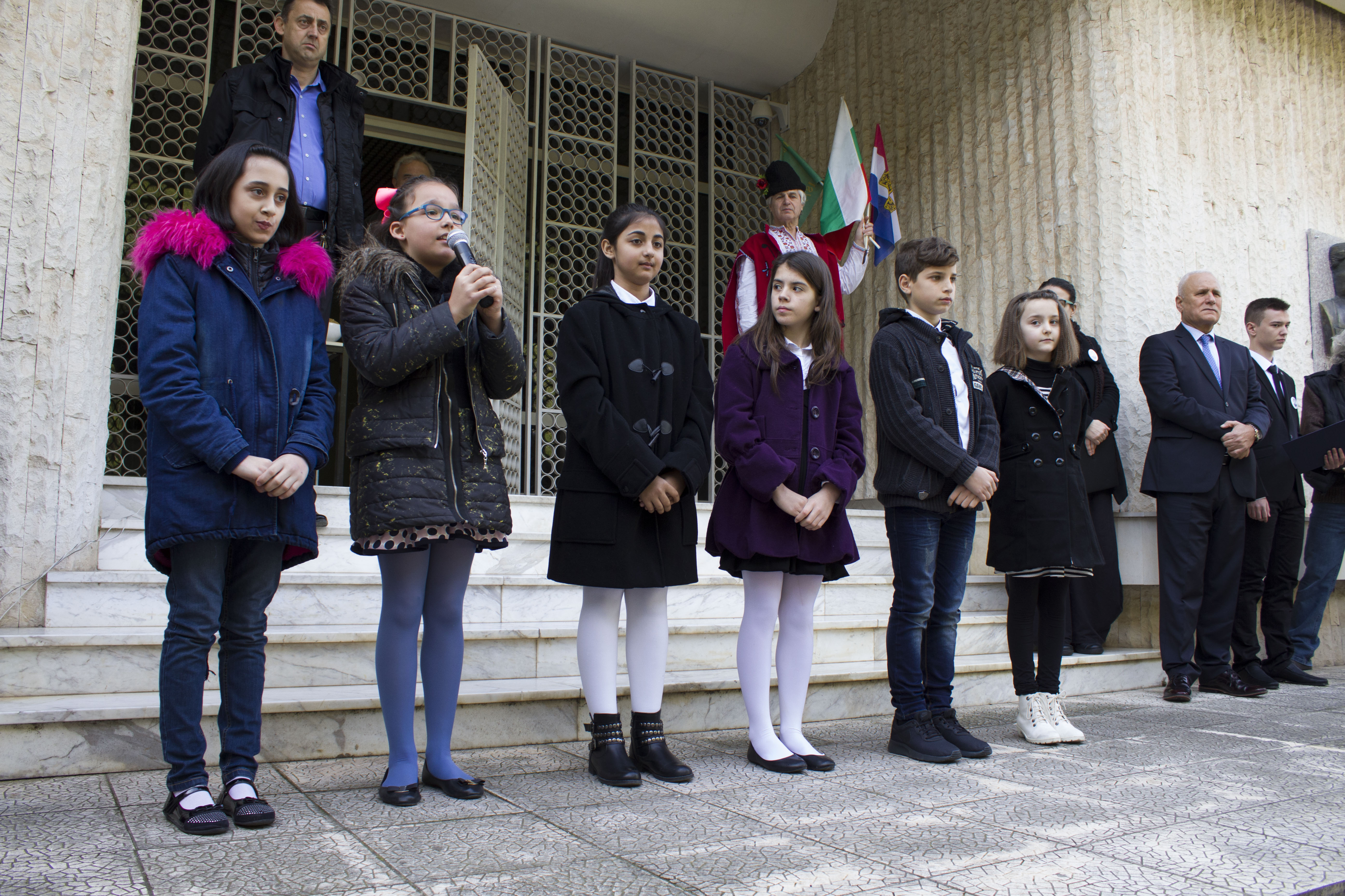 Събитието продължи в препълнения киносалон на посолството, където режисьорът Искрен Красимиров (в ролята на Христо Ботев) и актьорът Симеон Владов (в ролята на Васил Левски) изнесоха Урок по родолюбие за най-малките гости.