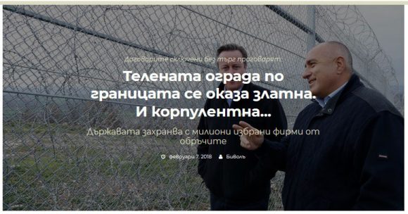 Българската държава е платила огромни нереални суми на няколко избрани фирми, които строят телената ограда по границата ни с Турция. Договорите на държавата от 2016 г. са с надути цени. Реално строят подизпълнители на четири-пет пъти по-ниски цени. Плащането също така е ставало при изключително изгодни за тях условия, за каквито други изпълнители на обществени поръчки биха могли само да мечтаят.