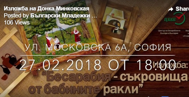 Имаме удоволствие да Ви поканим на откриването на изложба «Бесарабия — съкровища от бабините ракли» на бесарабската българка, художничката Донка Минковская от с. Чийшия, Украйна.
