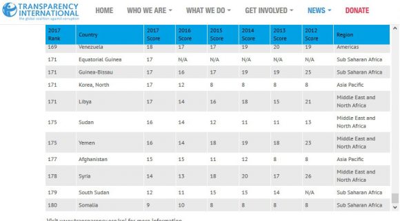 На последното място под № 180 е Сомалия, като конкуренция й правят Южен Судан, Сирия, Афганистан и др.