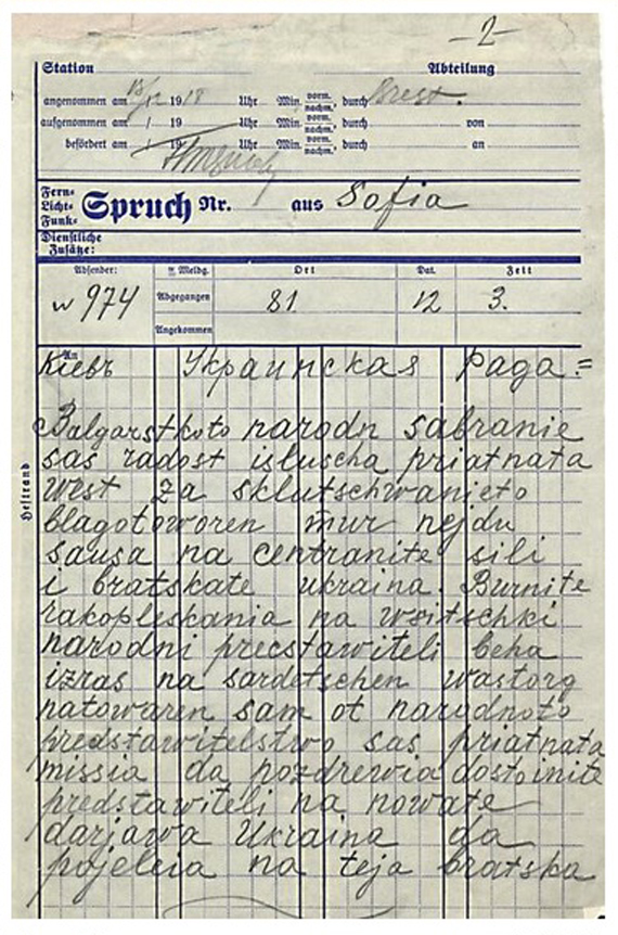 Ето какво пише в тази телеграма, изпратена от София в Киев преди сто години: