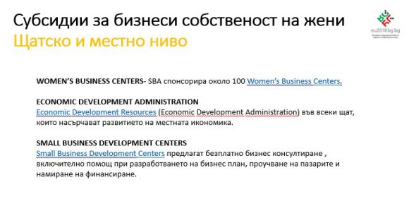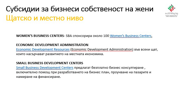 Темите за обществените поръчки и субсидии за жени предприемачи бяха включени в презентация за сертифицирани предприятия за договаряне и възлагане на поръчки; за субсидирането на бизнеси, собственост на жени, на щадско и местно ниво, и др.