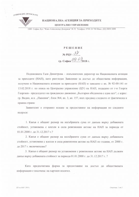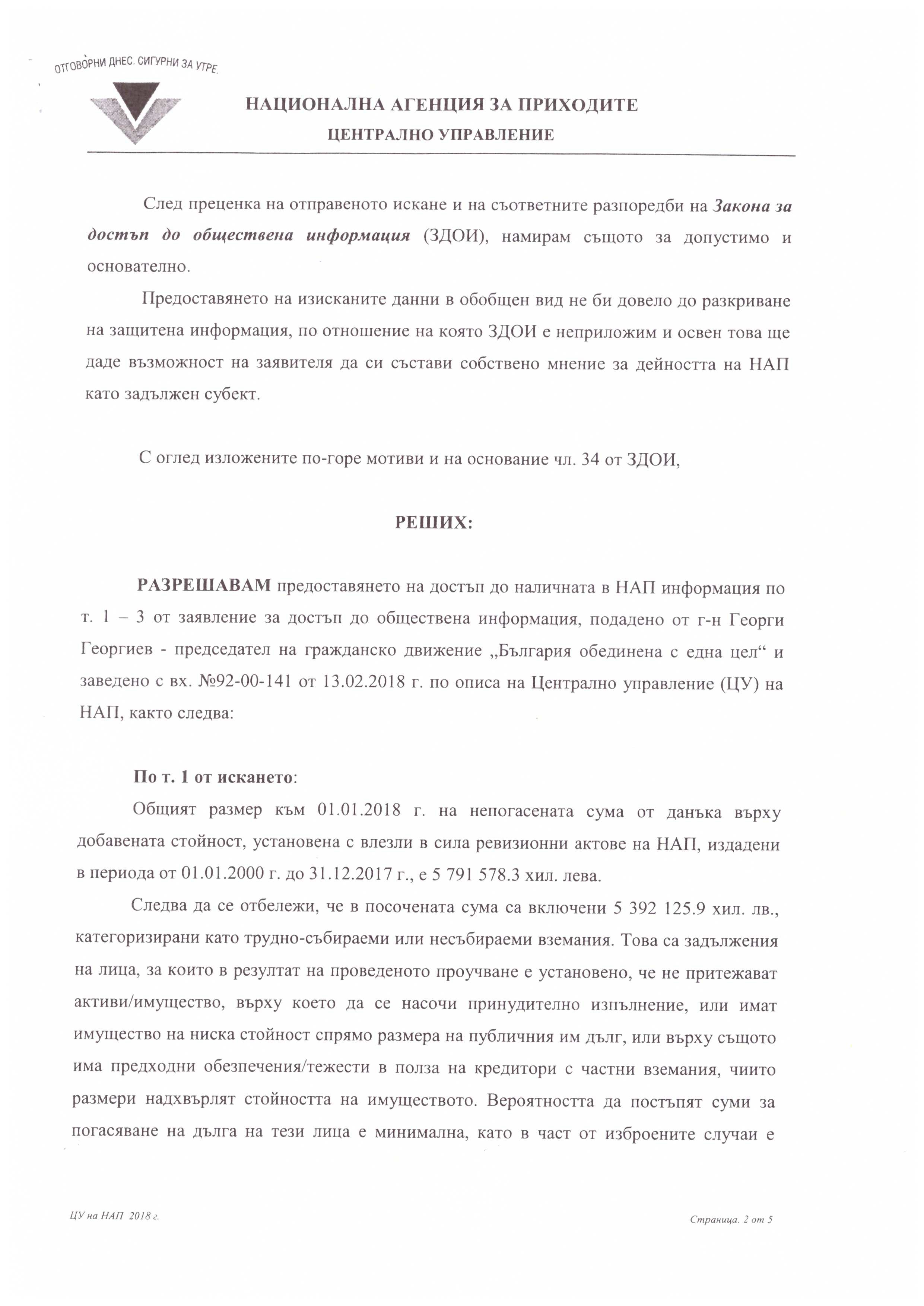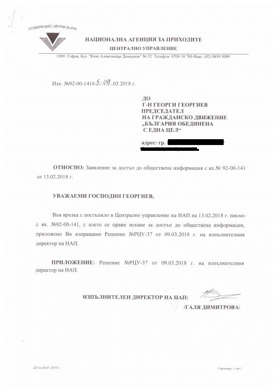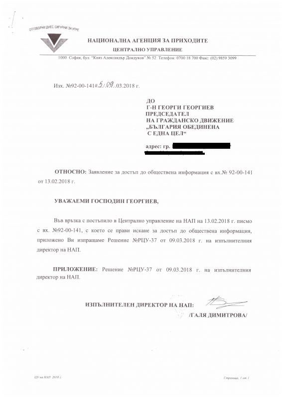 Факсимилета от отговора, който ГД „БОЕЦ“ е получило от НАП по Закона за достъп до обществена информация. Целият файл в пдф тук – Zdoi