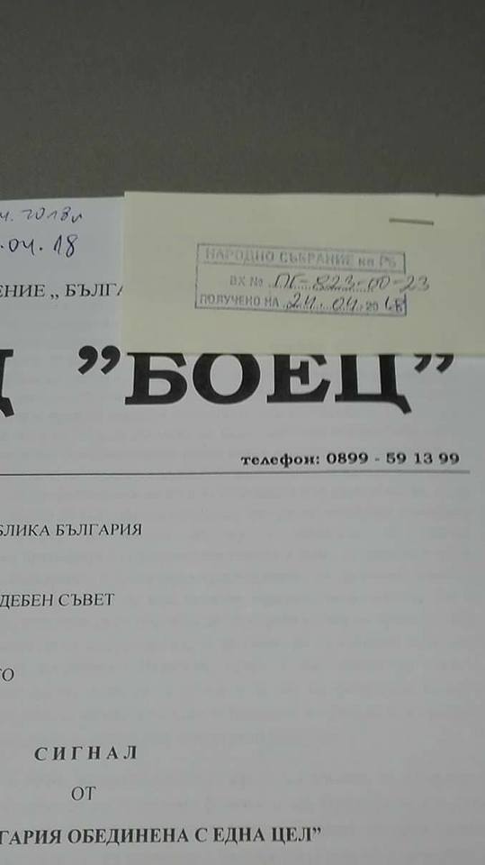 Въпреки заплахите и въпреки риска, днес, 24.04.2018 г., БОЕЦ внесохме сигнал до Инспектората на ВСС, Министерството на правосъдието и Парламента, с искане за образуване на проверка по повод бруталните действия на СП и КПКОНПИ при показният арест на кмета на район „Младост“ Десислава Иванчева и зам.-кмета Биляна Петрова, извършен на 17 април в столицата.