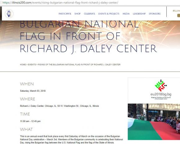 This is an annual event that took place every first Saturday of March on the occasion of the Bulgarian National Day celebration – March 3rd. Members of the Bulgarian community is celebrating their National Day, rising the Bulgarian flag between the U.S. National Flag and the flag of the State of Illinois. Students from Bulgarian Sunday schools are presenting a cultural program (due to the weather the cultural program could be indoor). This year is more special for Bulgaria and Bulgarians – in the first half of 2018, Bulgaria is having the Presidency of the Council of the European Union.