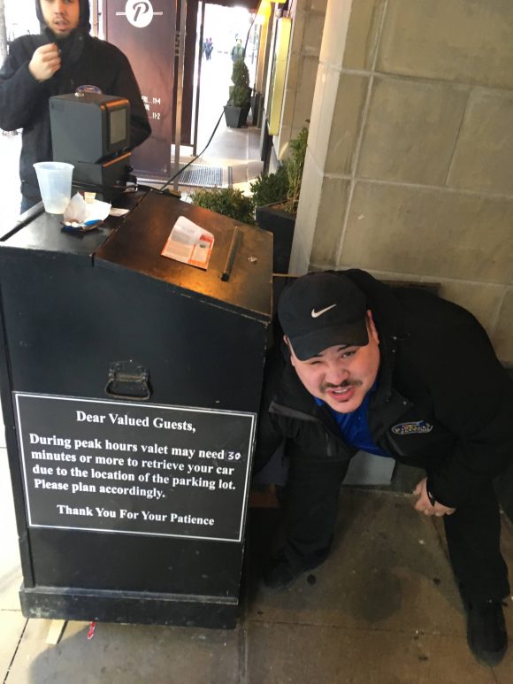 Само на стотина метра от площада на кметството видях на улицата черна табела с надпис „Valet parking – $16“.