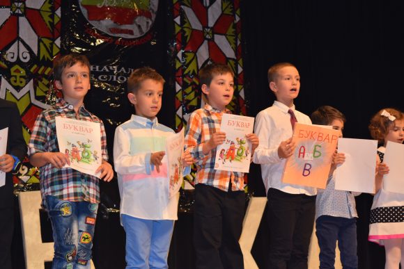 Залата притихна, на екрана пробягваха образите на първоучителите ни, двете азбуки, Дворът на кирилицата и се заслушахме в посланието на Глаголицата – „…Който се учи, хвърля божия светлина. Жъни знание… Въздигай духа си! Живей като едно цяло със Земята” – ни призоваваха петокласниците от сцената.