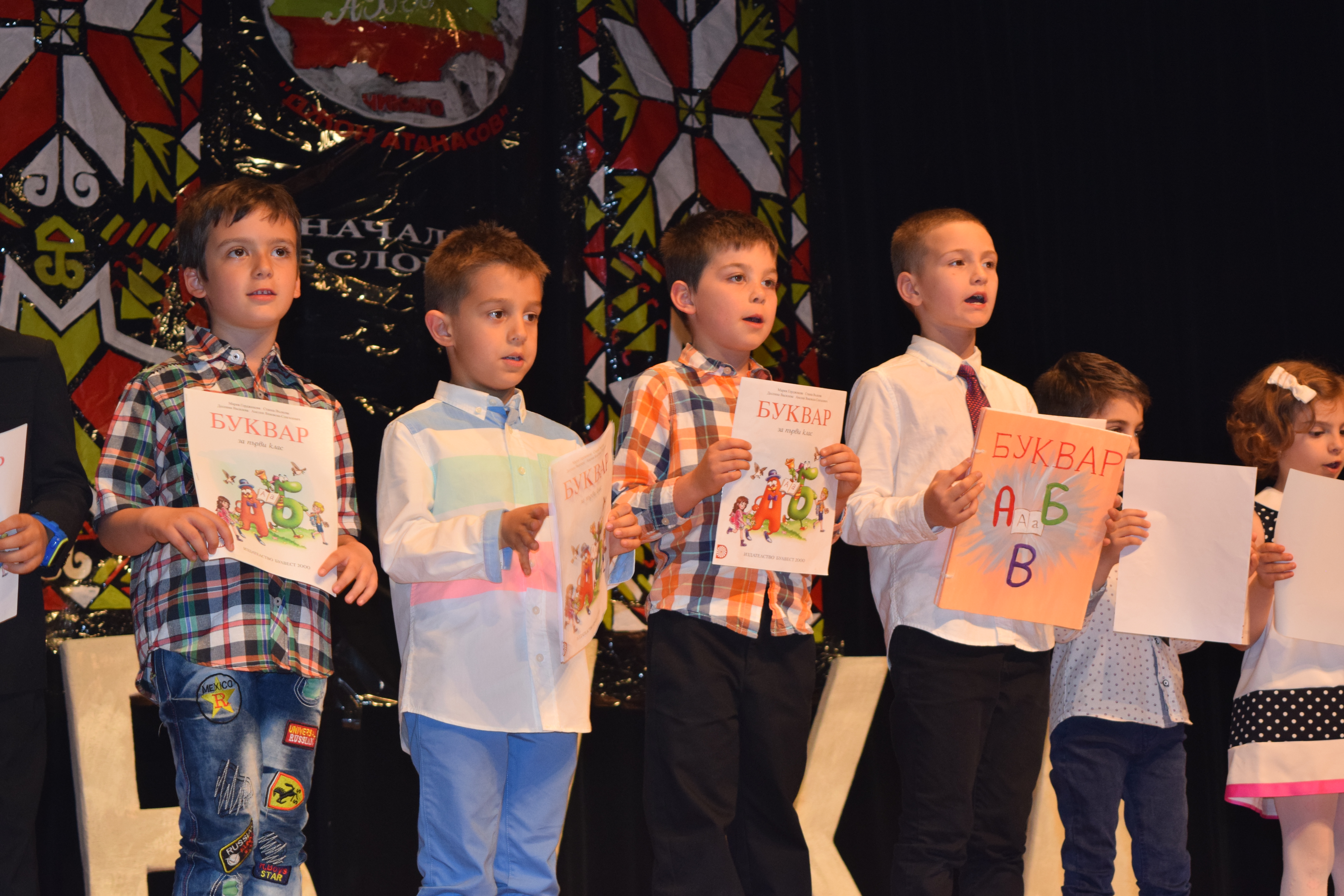 Най-малките ученици на г-жа Валя Камбурова и г-жа Цвети Пейчева бързо разстлаха свитък с азбуката ни и смело разпознаваха буквите. Уникалните творчески подходи на г-жа Камбурова са в основата на най-подготвените за първи клас ученици, които са готови да четат от малки. Преди това, обаче, те преминават през школата на малките азбукарчета на г-жа Пейчева, за да научат българските букви и техните звукове. Първокласниците на Ирена Стоянова и Илонка Батинкова гордо демонстрираха уменията си, че вече са грамотни с „Песента за буквара”. На сцената изведнъж оживяха герои от български приказки, изпълнени от учениците на г-жа Стела Тончева. Всеки, който желае да пише много красиво и правилно, трябва да се запише в класа на г-жа Тончева.
