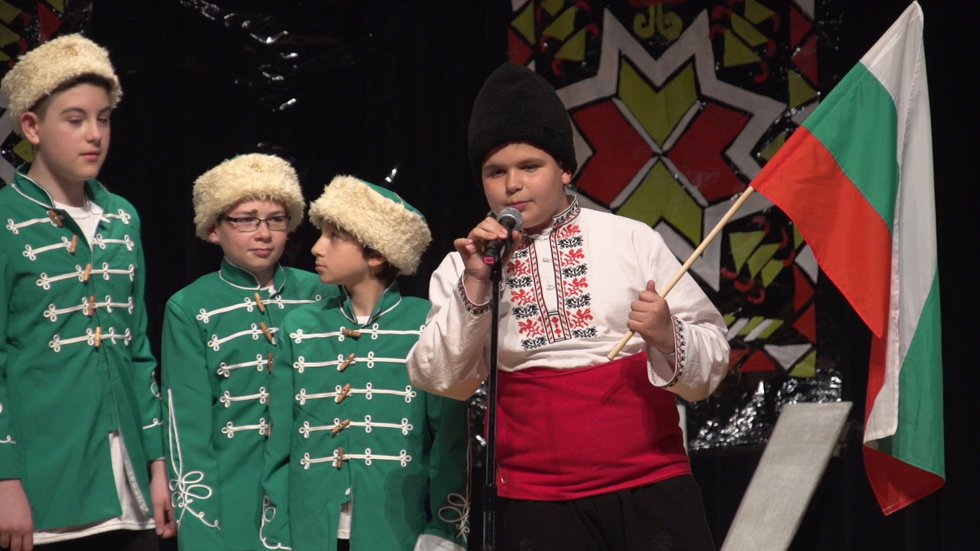 Последваха песни за България, изпълнени от изрядните по дисциплина и отговорност ученици от 3–ти и 4-ти клас на винаги усмихнатата и приветлива г-жа Силвия Кънчева. Момчета от 6 клас в четнически униформи и развян трибагреник ни припомниха моменти от националната ни история, напълно в емоционалния и патриотичен стил на преподавателите си, Анелия Лазарова и Златина Костова.