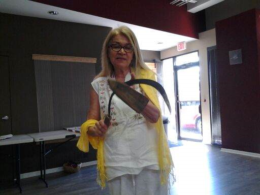 С ентусиазъм и почит към миналото тя показа и ценното „наследство“, което има от дядо си и което с много усилия е успяла да пренесе зад граница – автентични сърп и паламарка.