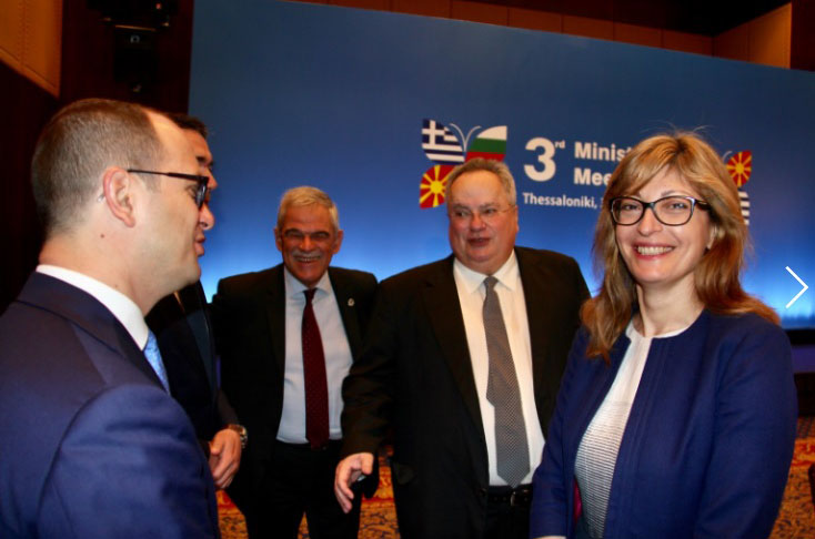 На среща в Солун първите дипломати на България, Албания, Гърция и Р. Македония – Екатерина Захариева, Дитмир Бушати, Никос Кодзияс и Никола Димитров обсъдиха как да подобрят сътрудничеството между своите държави във всички аспекти на политиката, икономиката, културата, образованието и гражданското общество – информира пресцентърът на МВнР. Това е третата подобна среща, като сега, освен министрите на външните работи, се събраха делегации от министерствата на вътрешните работи и на транспорта от четирите държави.