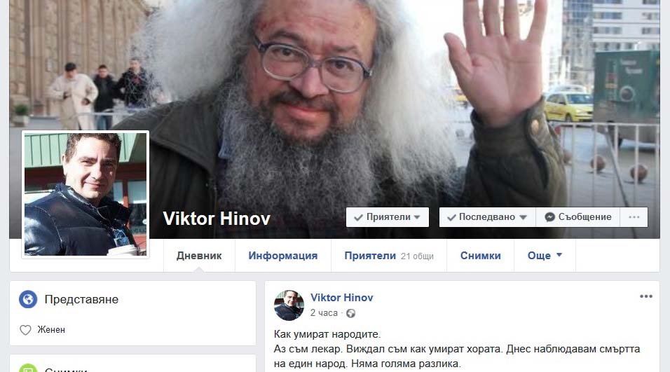 Понеже видях коментари в мрежата с упреци – Кой си ти бе, Виктор Хинов, че да пишеш такива работи? ще допълня, че Виктор не само е доктор в САЩ, но и като се върне в България половината от почивката си преглежда и лекува съвсем безплатно познати и непознати, които не са състоятелни. Освен това е и чудесен автор на талантливи и човешки разкази, които може да намерите съвсем безплатно по-горе в книжарницата на Еврочикаго.