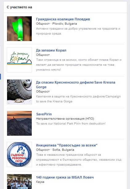 4. „Да спасим Кресненското дефиле“ – https://www.fb.com/savekresnagorge/?fref=gs&dti=1999333793617118&hc_location=group