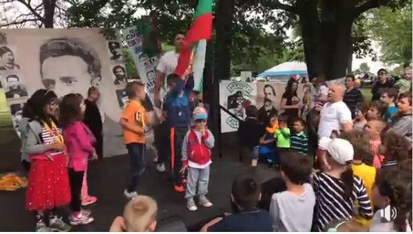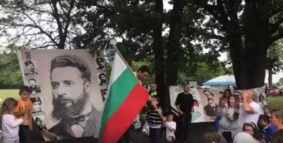 2 юни 2018 г. Български събор в Чикаго в чест на Христо Ботев и всички загинали за свободата на България. Деца от българската общност, участвали в спортни състезания, излизат едно след друго пред портрета на Ботев и развяват българския национален флаг.