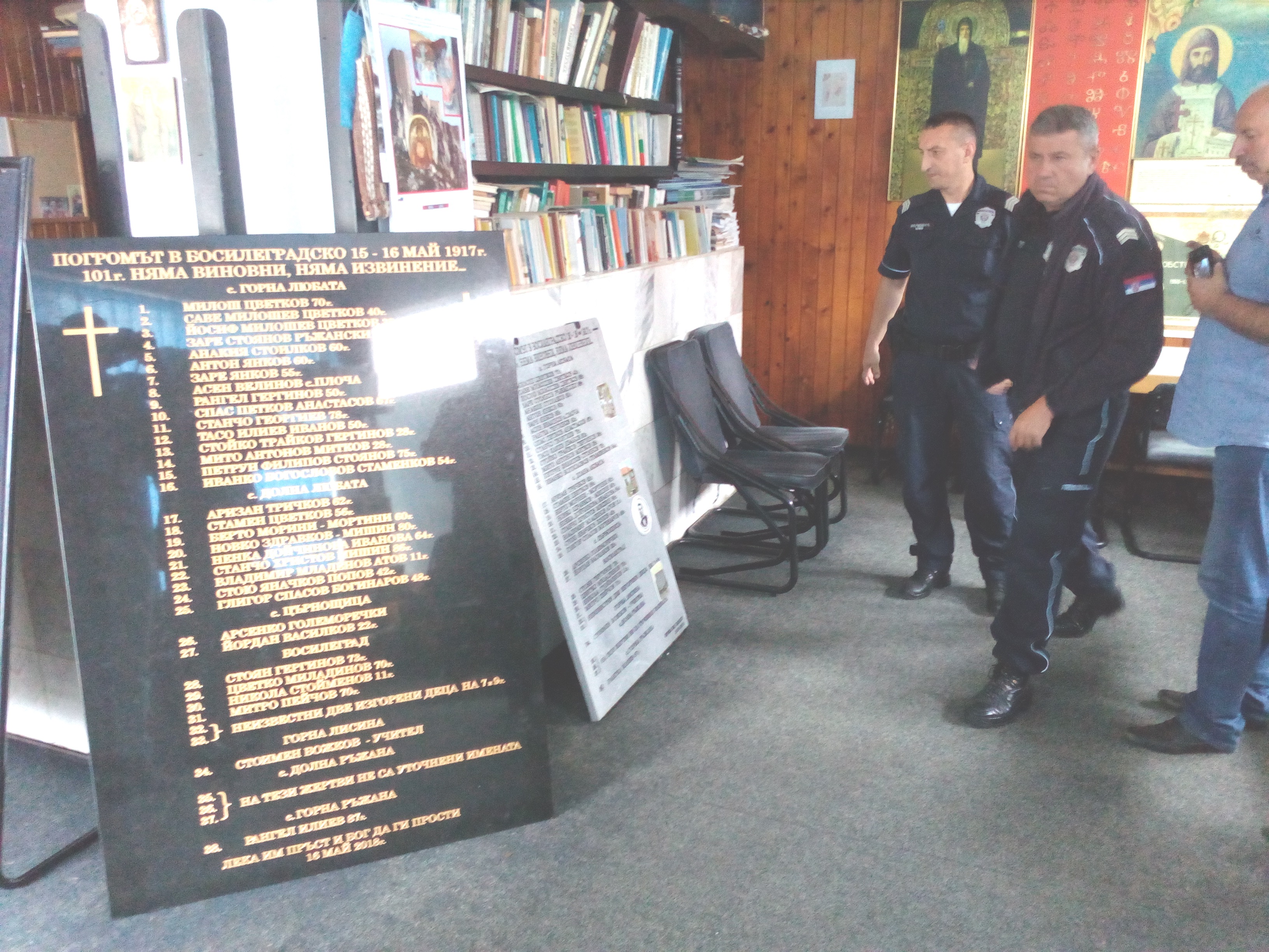 Днес органите на МВР в Босилеград и Съдът за нарушения във Враня, в присъствието на Генералния консул на Р. България в Ниш, върнаха на председателя на Демократичния съюз на българите Драголюб Иванчов отнетите от сръбските власти паметни плочи с имената на жертвите от Босилеградският погром, избити на 15-16 май 1917 г.