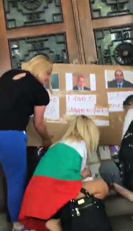 Един от плакатите на протеста беше с лика на баба Дора от село Шарково в Странджа. Държеше го една българка от Брайтън, който беше дошла специално в почивния си ден в Лондон заради този протест.