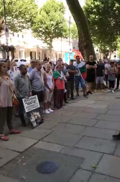Те скандираха пред посолството „Оставка“, „Мафия“, „Убийци“ и призоваваха българския посланик в Лондон, като представляващ България в британската столица, да слезе при тях. Както и да предаде на премиера Борисов, че българи в Лондон искат оставката му. Протестиращите се заканиха следващият им протест да бъде есента в Брюксел, пред Европейския парламент.