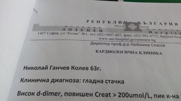 Сутринта бях у Босия. Докато преглеждах изследванията му от болница „Лозенец“, се натъкнах на това, което виждате на снимката. No comment, както се казва в такива случаи. Имам предвид диагнозата.