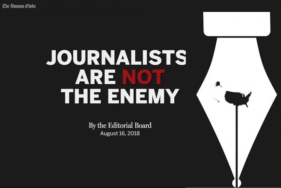 В електронната версия на вестника редколегията на „Бостън глоуб“ обвини Тръмп, че поддържа постоянна кампания срещу свободата на печата. Величието на Америка зависи от функцията на свободния печат да казва истината на силните. Да се слага на печата етикет „враг на народа“ е колкото неамериканско, толкова и опасно за гражданския пакт, който споделяме повече от две столетия, подчертава вестникът.