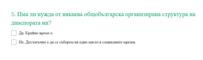 Отговори на въпроса „Има ли нужда от някаква общобългарска организирана структура на диаспората ни?“: